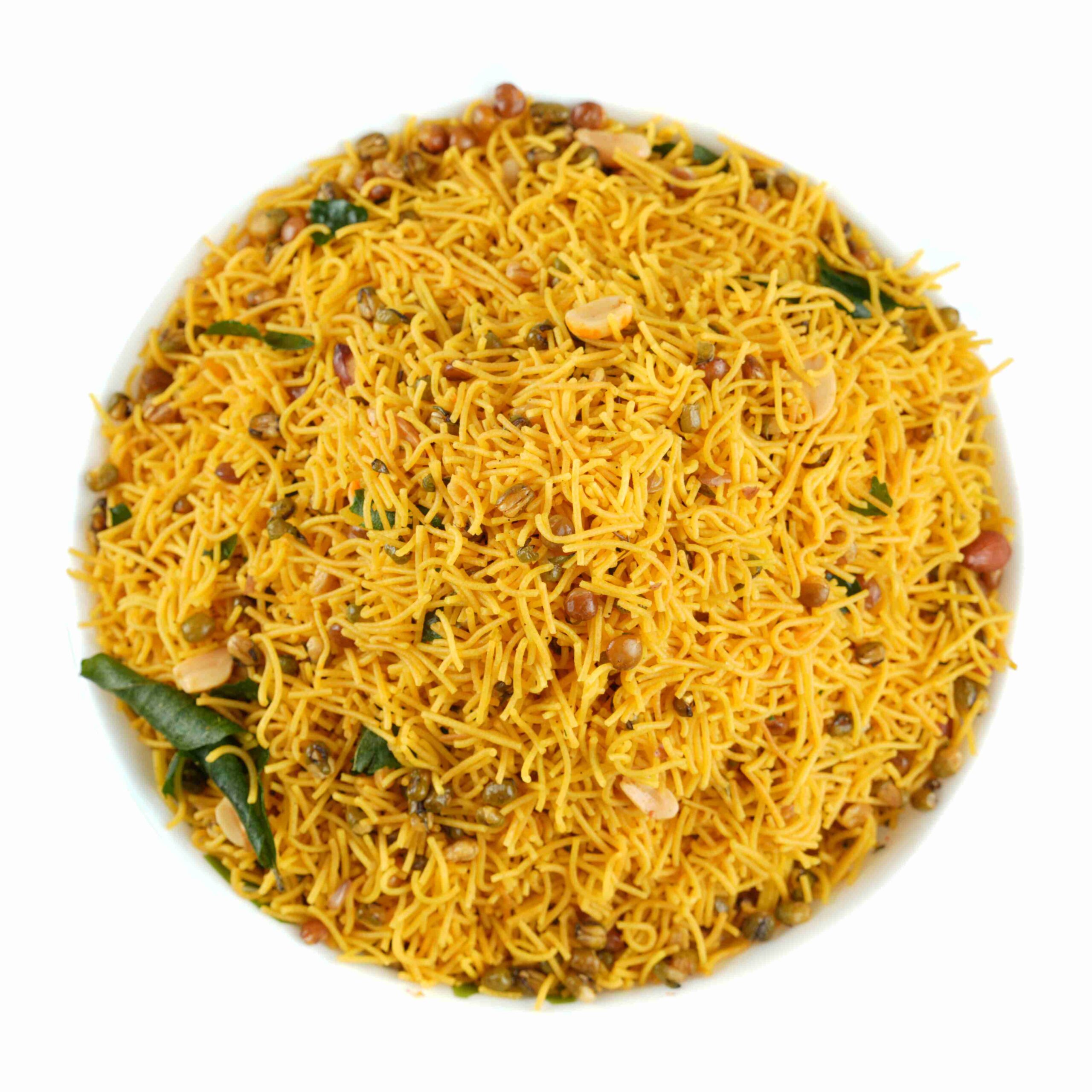 Bombay Mixture is a popular South Indian crunchy snack mix made from sev, fried lentils, peanuts, roasted gram, and crispy flakes. It is lightly spiced with chilli, turmeric, and aromatic spices to give a savory, crunchy, and flavourful taste.